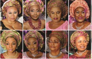 First on the list is the couple’s mothers. Mothers are mostly the happiest at weddings and it was very evident at this wedding for the couple’s mothers, Princess Omolola Oyinlola and Mrs Kehinde Okunowo, who wore a beautiful smile all through the event. They had many families and friends who trooped out to celebrate the glorious day with them.one obvious thing about both of them is that they are very beautiful, they both looked younger than their ages and adorned lovely outfits at the wedding. They both wore same multicolored silver background all sequenced lace with a matching silver headgear. Princess Omolola Oyinlola was former Lagos and Osun First Lady. Let us take you through the list of the women and ladies who dazzled at the wedding. On the list is Hajia Abba Folawiyo, Yewande Onileere, Feyisetan Fayose, Idiat Oluranti Adebule, Kemi Nelson, Salmot Badru, Ruth Benamaisia-Opia, Toyin Saraki, Bintu Tinubu, Sade okoya, Badirat Adeyemi, Ojuolape Ojora, Bola Shagaya, Erelu Abiola Dosunmu, Olori Ladun Sijuwade, Erelu Olusola Obada, Bola Obasanjo, Kemi Akala, Bolanle Okusanya-Feyita, Ronke Atere, Sherifat Aregbesola, Laoye Tomori, Funke Alebiosu, Oba Tejuosho Oloris, Dupe Oguntade, Bisi Abiola, Montai Elemosho, Biodun Olujinmi, Ndidi Okereke Onyuike, Joko Oni, Joko Adewusi, Toyin Edun, Jumoke Oyeneyin, Hafsat Osinusi, Mary Inegbese, Eniola Salu, Funke Daniel, Joke Shogunro, Titi Oseni, Tutu Ayeni, Chief mrs Adenike Shittu, chief mrs yinka Baju, chief mrs kafilat Ogbara, chief mrs Kemi Oni, chief mrs Nike Oluwole, Modupe Shopeju, Dayo Adeyinka, Moji Siyanbola, Sola Adeyemo, Yeside Fagbohun, Modupe Bankole, Bunmi Otusanya, Princess Shade Fakayode, Funmilayo Odeniran, chief Mrs Olanrewaju Otiti, Chief Mrs Agi Ojehomon, nike makanjuola, Funmi Tejuosho, Kemi Ayuba, Ronke Oyebade, Tola Oyebade, Idowu Okunowo, Aramide Odeka, Gbemisola Aluko, Biola Okunowo, Damilola Famakinwa, Folake Enitilo, Jumoke Abegunde, Tokunbo Adeola, Barr Lara Alakija, Lola Ademosu, Yeye funsho Ajayi, Mrs Frederick Faseun, Mrs Isiaka Adeleke, Ganiyat Badmus, Bukola Okulaja Oshikoya, Jibike Babatunde and many others.