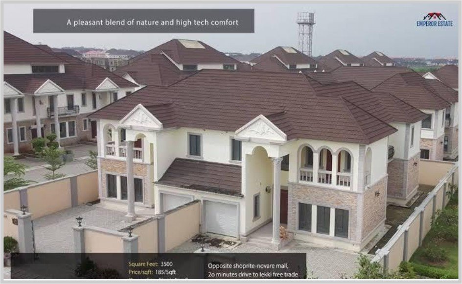 Emperor Estate is a gated, highbrow residential estate located in Sangotedo, after the Novare Mall (Shoprite) off the Lekki –Epe Expressway. The luxurious estate sits on 70,260 sqm of land in a peaceful environment which is a 47-minutes drive to Victoria Island (V.I). It’s obviously the most beauty estate in that axis. A lot of celebrities live in the estate even before the advent of Shoprite.