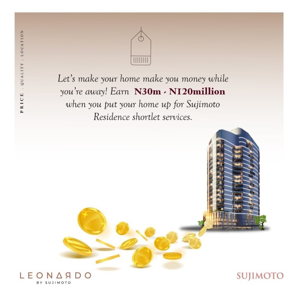 When you own a Leonardo, you can either live in it whenever you are in Lagos or we can help you put it on our Sujimoto Residences, an AirBNB Styled luxury short let service that guarantees N30million – N120million per annum at 70% occupancy!