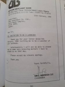 I invited  Dr Mike Adenuga, who regrettably couldn’t attend the ceremony, but, out of courtesy, sent me his letter of apology (reprinted in this post).