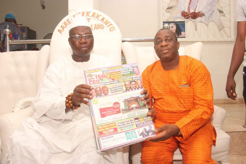 Otunba Gani Adams told City People last Monday that the last 1 year has been very challenging for him as his schedule has become even busier than before. The Mangement of City People Magazine had visited the Aare at his Lagos home to celebrate with him and he took time out to share with City People how the last one year had been. He granted City People his 1st major interview since he ascended the Aare Ona Kakanfo throne. The team led by Publisher, Seye Kehinde included Francis Owojori, the DMD of City People, Isaac Abimbade, the head of Real Estate desk, and Jimmy Abdulrasheed, City People’s Senior Photographer.