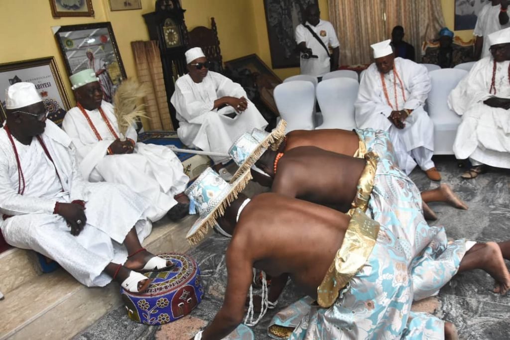 He was ushered to the Ojubo-Esu, a sacred place of the gods of Ajirun, where he, the Ajirun, offered a session of prayers and supplication along with his people, praying for peace, good health, and prosperity for the people of Ajirunland.