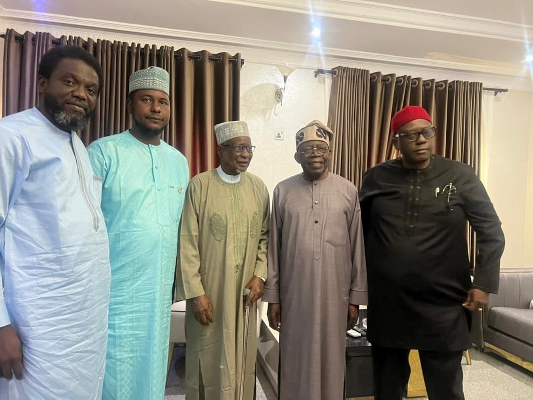 Photo (L to R): Standing with His Excellency Asiwaju Bola Ahmed Tinubu are Comrade Ayodele Adewale, Abdullahi Tanko Yakasai, Alhaji Salihu Abubarka Tanko Yakasai and Hon. Chief Longers Anyanwu at His Excellency Asiwaju Bola Ahmed Tinubu’s house in Abuja.