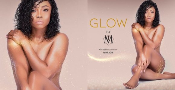 Nigerian on-air personality, Toke Makinwa has posed nude in a campaign for her new beauty brand called ‘Glow by TM’.