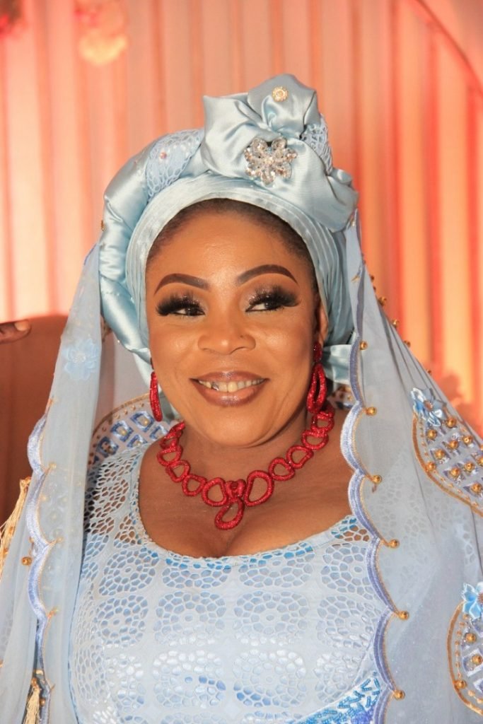 This marked the end of the Nikkah, the Akewi,in the person of Ajobiewe took to the stage to sing songs of praise in honour of the new couple, as Tunde Ara and his band prepared for the main event.