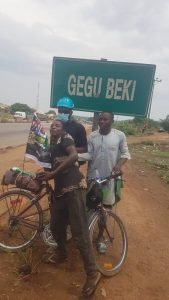 Peter who left the Federal Capital City, Abuja yesterday Monday 6th of May, 2024, around 7am is at the time of writing this report in Ahoko Kogi LGA in Kogi state. He will be riding his bicycle through the corridors of states such as Kogi, Ondo, Osun, Oyo, Ogun before finally getting to Lagos state.