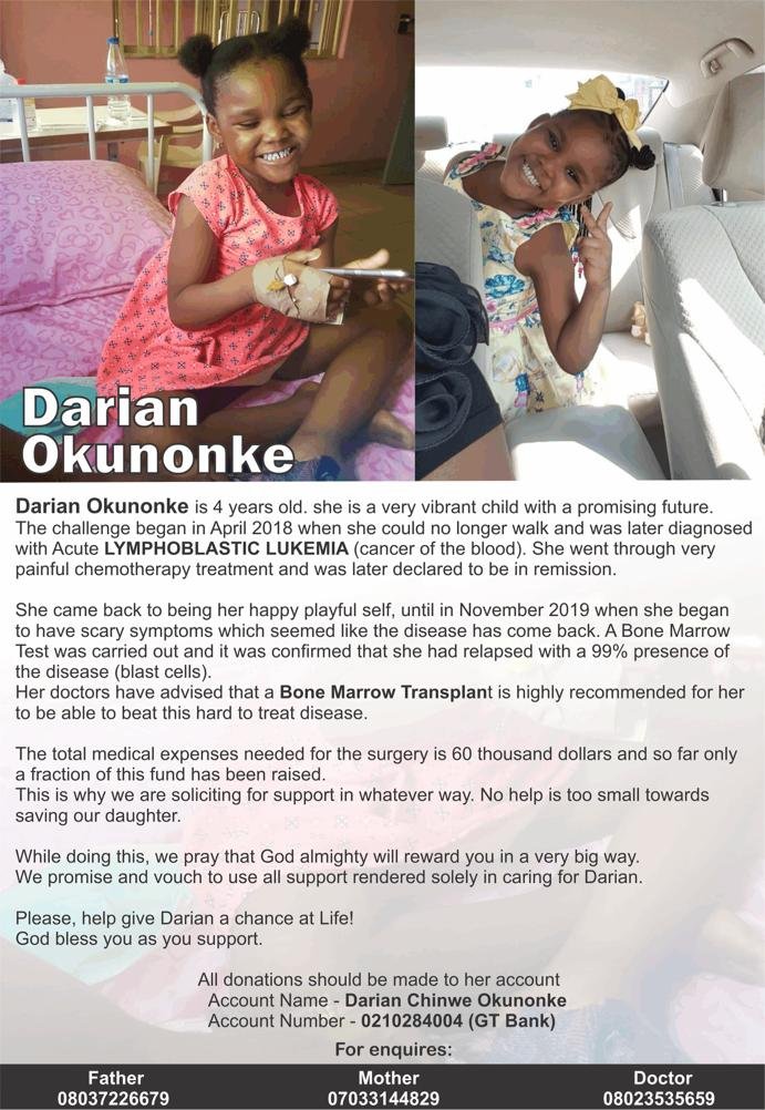 Darian Okunonke is 4 years old , she is a very vibrant child