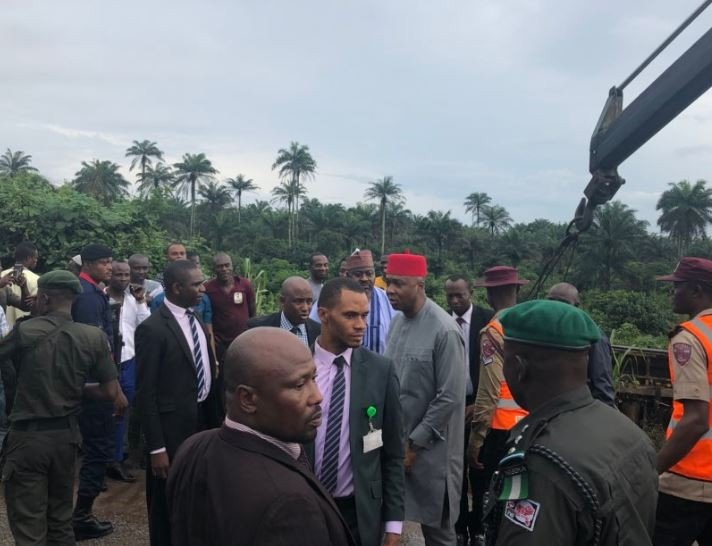 During his visit, Twitter user @aedanasika reports that the Senate President stopped his convoy to help accident victims along the Aba-Owerri road.