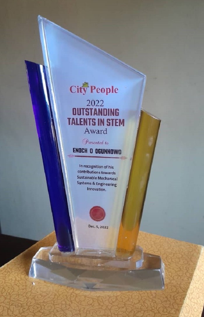 In recognition of breakthrough research and exceptional promise in mechanical systems innovation, City People Magazine has awarded Enoch Ogunnowo the 2022 Outstanding Talent STEM Award in Sustainable Mechanical Systems and Engineering Innovation.