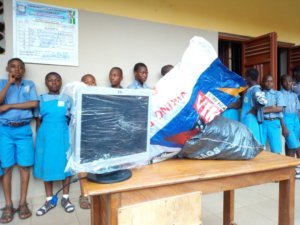 The Old students presented 50 uniforms for students whose uniforms were no longer presentable as well as monitors for the Computer Unit of the school.