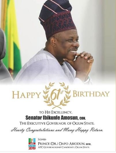 Happy Birthday to the Executive Governor of Ogun State, Senator Ibikunle Amosun.