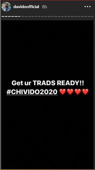 He also used a wedding emoji to compliment the post. On his Instastory, the award-winning singer wrote “Get ur Trads ready!! #CHIVIDO2019.