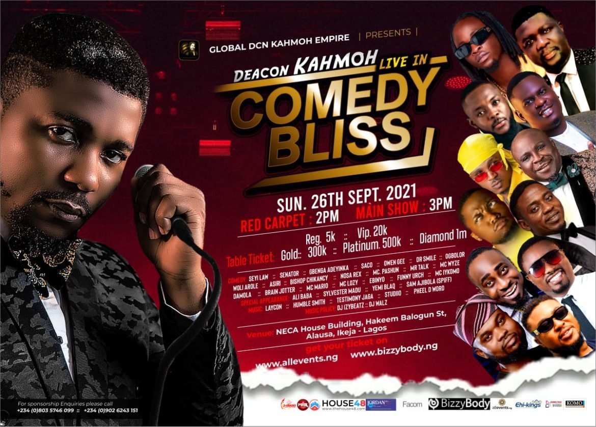 One of Nigerian leading comedian and even compere, Deacon Kahmoh is set to host the much-anticipated stage comedy concert COMEDY BLISS.
