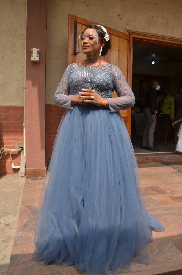 As she took a walk down the aisle like a virgin bride, the question on everybody’s lips was ‘has Funmi been really married for 20 years’? the reason for the question was very simple. Funmi had an astonishing look just as if she was getting married for the very first time. To describe her outfit would be a bit difficult simply because it was so gorgeous and the most beautiful at the event. She slayed her well designed grey colour gown with shiny stones in such a way that stood her out from everyone else.