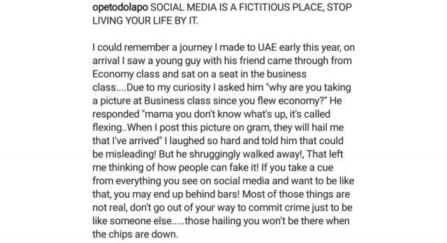Dolapo Badmus had shared an inspirational post for people living fake lives, pretending to be what they are not just for social media.