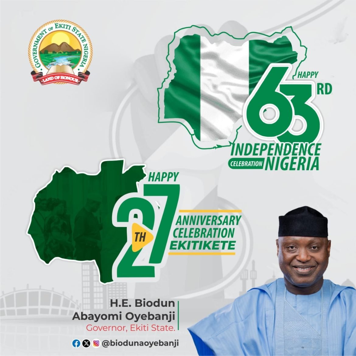 The Governor congratulated all Ekiti people on the 27th anniversary of the state creation and also thanked those whose toil and sweats brought it about its realization saying “As we are thankful to God for how long we have gone as a people, we also need to reflect on the unity of the past that gave us the State and the need to do even far more to achieve more.”