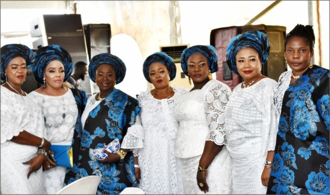 They were the most visible at the event. These ladies in white are Olori Hussein’s gang. They belong to the same social group and they also party together. They all stunned in white lace and royal blue Aso-Ebi Gele. This super gang include Funmi Beauty World, Mrs Olasunmbo Awolola, Alhaja Mutiat Bello, Mrs Deboral Budok-Ale Mrs Olaide Bakare, Alhaji Oshdi and Mrs Adeniyi Dada.