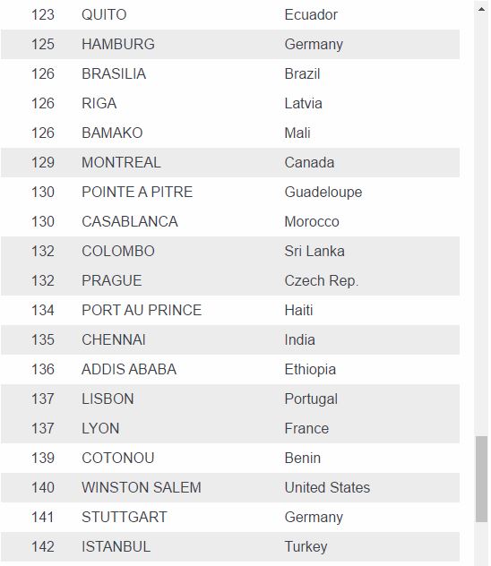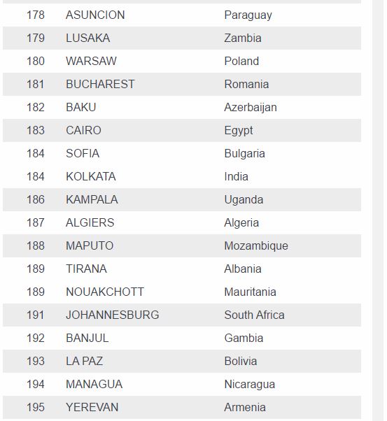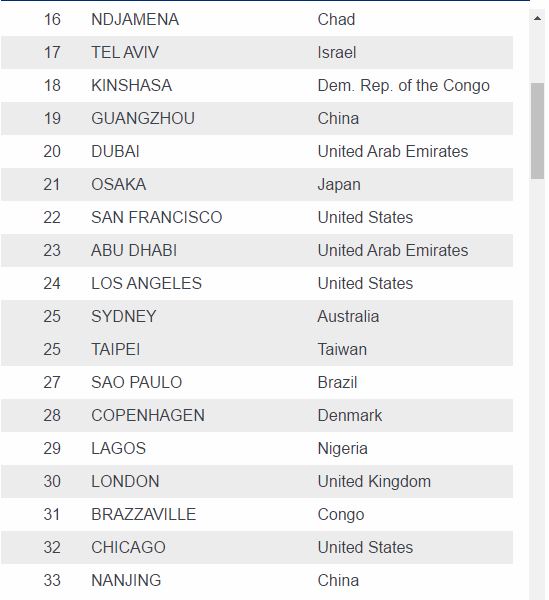Lagos, the commercial capital of Nigeria, is ranked 29th and is not even among the top five African cities that are very expensive.