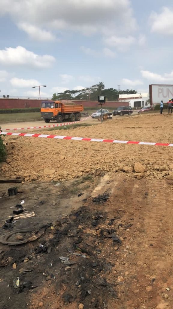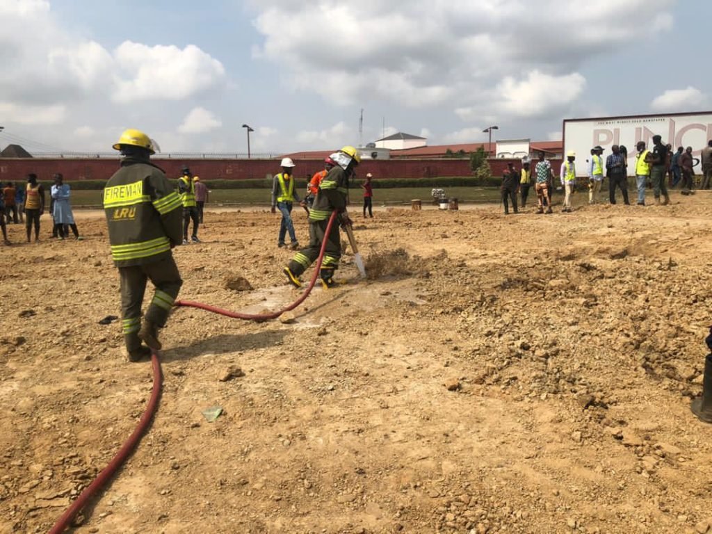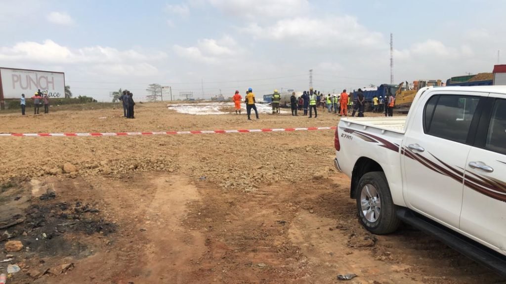 by the Julius Berger crew working on the road. All responders are on the scene.
