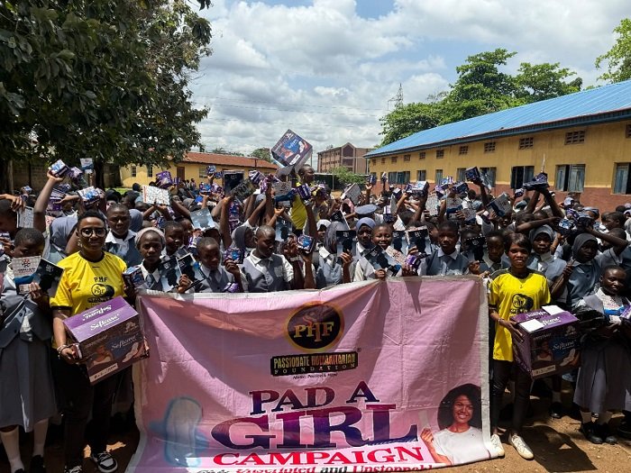 The 𝗣𝗮𝘀𝘀𝗶𝗼𝗻𝗮𝘁𝗲 𝗛𝘂𝗺𝗮𝗻𝗶𝘁𝗮𝗿𝗶𝗮𝗻 𝗙𝗼𝘂𝗻𝗱𝗮𝘁𝗶𝗼𝗻, led by 𝗔𝗺𝗯𝗮𝘀𝘀𝗮𝗱𝗼𝗿. 𝗔𝗱𝘂𝗻𝗸𝗲 𝗢𝗹𝗮𝘁𝘂𝗻𝗷𝗶, President and Visionary, has been at the forefront of initiatives aimed at promoting the welfare and empowerment of girls. The foundation’s decision to celebrate the Girl Child Day with a special program at Keke Senior High School was a testament to its commitment to this cause. The event featured the presentation of packs of sanitary pads to students, particularly the girls, to promote menstrual hygiene and dignity.