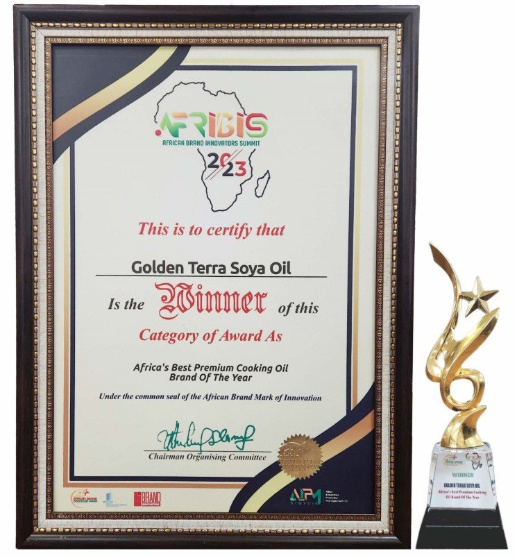 Golden Terra Soya Oil, one of Nigeria’s prominent cooking oil brands, has won the prestigious award of the Best Premium Cooking Oil Brand at the recent African Brand Innovation Summit. This highly anticipated event brought together industry leaders, experts, and innovators from across Nigeria to recognize and celebrate outstanding brands that demonstrate innovation, excellence, and a strong commitment to customer satisfaction.