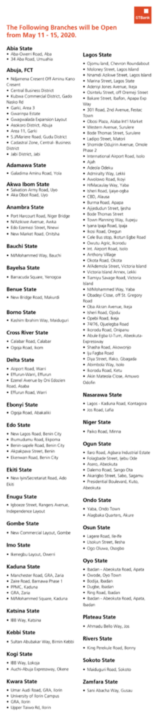 GTBank Set To Open The Following Branches From May 11th – 15th
