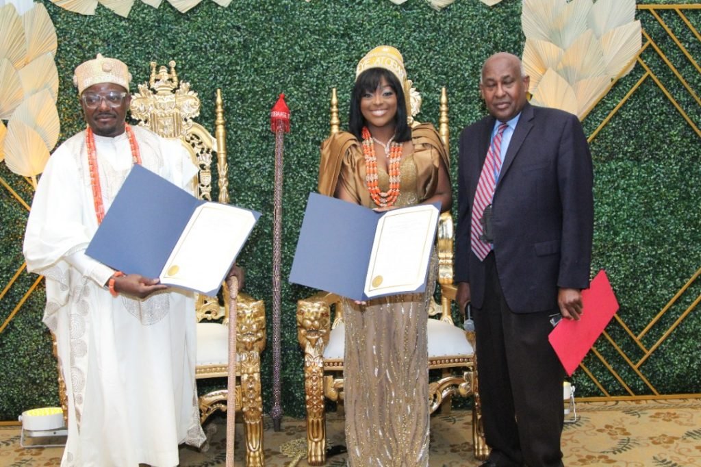 One of the many highlights of the evening was the US Congressional proclamation from Congresswoman Sheila Jackson Lee marking November 12th as “Atobasse Dr. Bbabjide Aguinbiade and Yeye Atobasse of Yorubaland Day in Texas’s 18th congressional district!” Sheila Jackson Lee and the City of Houston describe Atobasse Dr. Babajide Aguinbiade and his wife, Yeye Atobasse Funke Aguinbiade, as “strong pillars in Houston and Nigerians who have dedicated efforts to giving back to marginalized communities and have played integral roles in several social movements internationally.” She thanks them for their worthwhile efforts to enrich the city of Houston through mentorship, community development, educational scholarships, and international recognition.