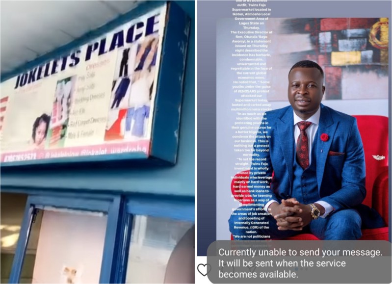 Do you know that popular Lagos big boy, Bayo Otunola, who 9ice praised in his album “Living Things? The dark-skinned entrepreneur also lost many millions of naira to looters in the Endsars protest. His super big supermarket on Ikotun-Egbeda road massively looted. The businessman shared this on his WhatsApp status that all had he worked for all his life were looted. The store and property vandalised were more than 500 million naira. Twinsfaja Nigeria Limited was incorporated in September 2007 and commenced operations immediately with branches across Lagos State