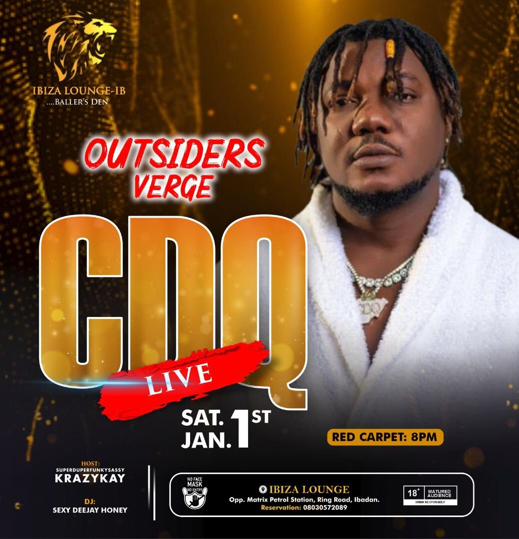 Ibadan city will this Saturday, January 1, 2022 witness a massive gathering of fun lovers as popular hip-hop act, CDQ storms a world class club called ,‘The Ibiza Lounge.’