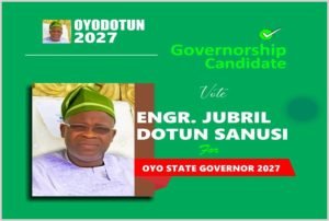 This development was confirmed by Sanusi with a poster he shared on his WhatsApp status last week. The poster read: OYODOTUN 2027, Governorahip Candidate, Vote Engr. Jubril Dotun Sanusi, Oyo State Governor 2027.