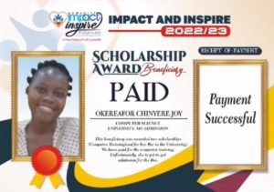 With regards to issue of scholarship raised in the UK complaints to the charity commission, especially concerning false claims by individuals such as Chinyere Okereafor Joy, and Olaoluwa Lawrence to be beneficiaries of the Charity’s Scholarship Scheme, sufficient evidences are available to counter the falsehood.