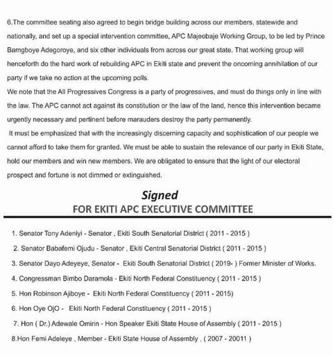 According to the statement, Fayemi was suspended due to “his numerous anti-party activities, especially his role in the recently concluded governorship election in Edo State which is contrary to the provisions of Article 21 (A) (ii) of the APC Constitution.”