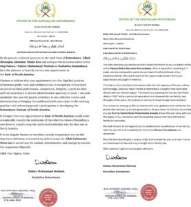 “I am writing to confirm that you have been appointed to a position of significant public trust and confidence due to your outstanding performance, competence, integrity, loyalty to Allah, and extensive 32 years of experience in private administration. I am confident that you will make a valuable contribution to our efforts to bring the traditional institution closer to the community and increase people’s involvement in developing the Kutumbawa Emirate of North America.