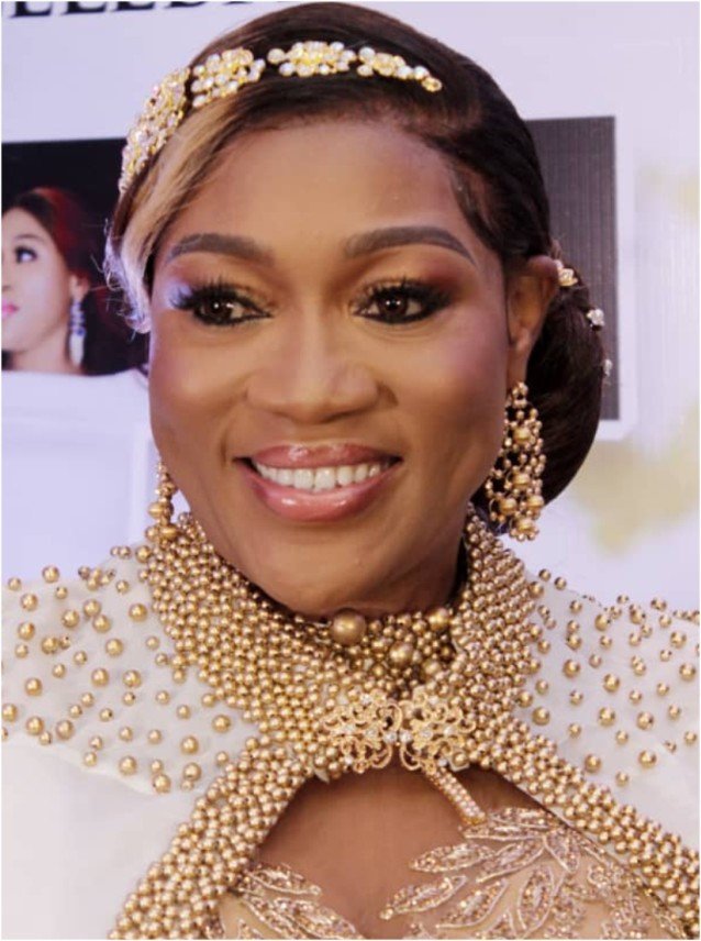 The celebrant is a great lady of Style and on that day she looked sizzling. She was dressed in a white and gold dress, decorated with golden south sea pearls dancing majestically on her. She danced into the hall with her children. And other well-wishers joined in the dancing and celebration till she went on stage to take her sit on the royal chair placed there for her.