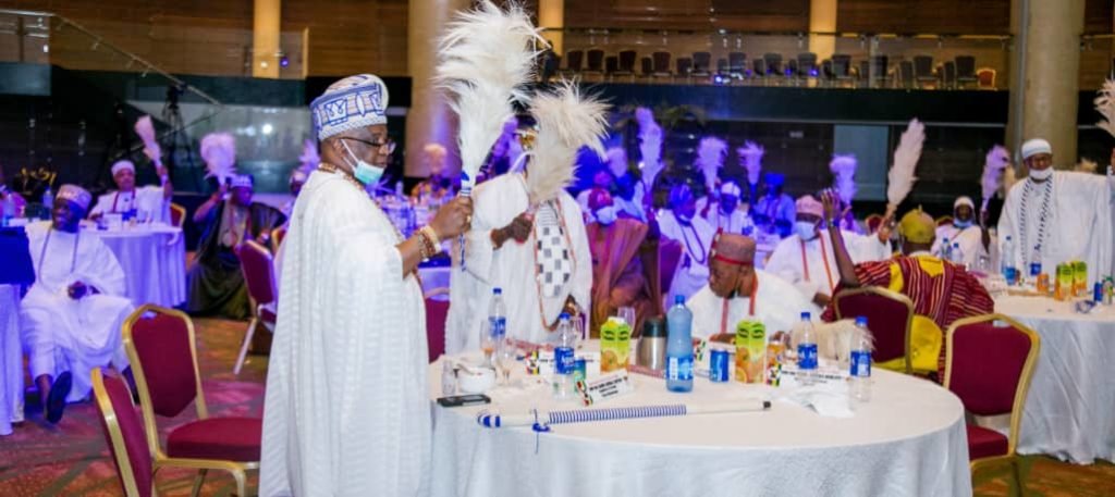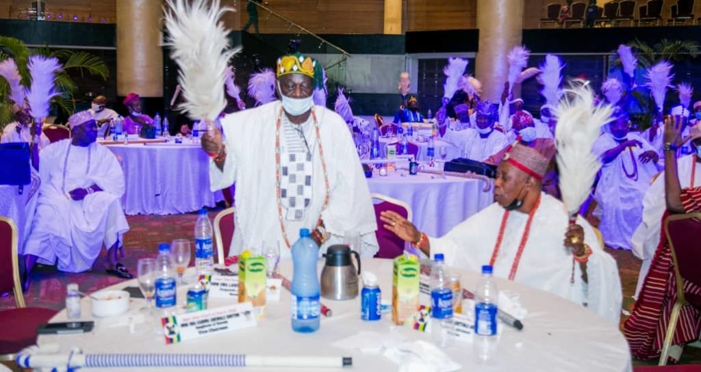After Oba Agbabiaka raised the deliberation, the entire monarchs used their symbol of offices (Horse-whip) and with a voice vote chorused their readiness and support, as they expect him to vie for the seat.