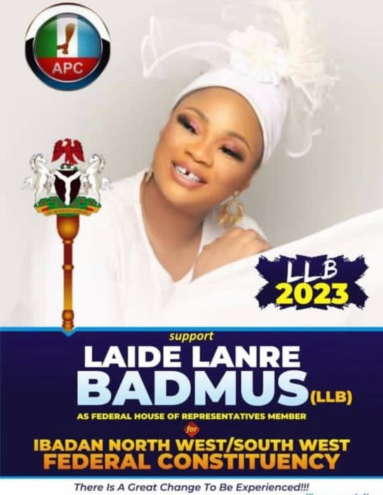 Have you heard the big news? It is the news of the decision of popular Ibadan female politician, Laide Lanre Badmus (LLB),to run for political office in Oyo State.She is contesting the House of Representative seat for Ibadan North West/South West Federal Constituency.