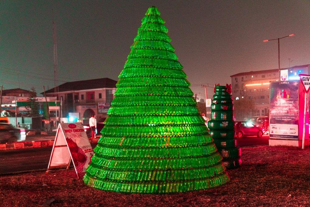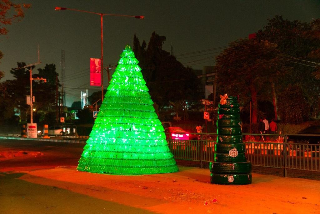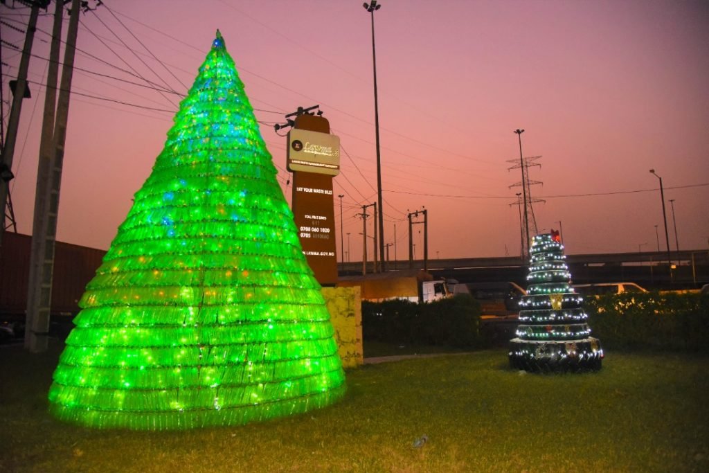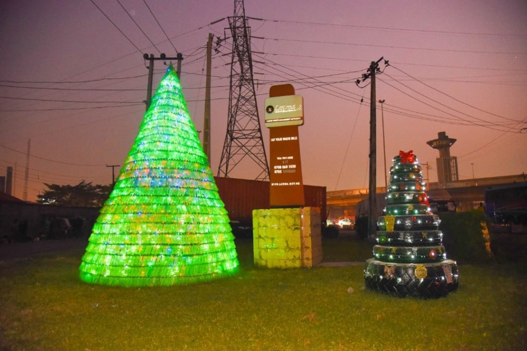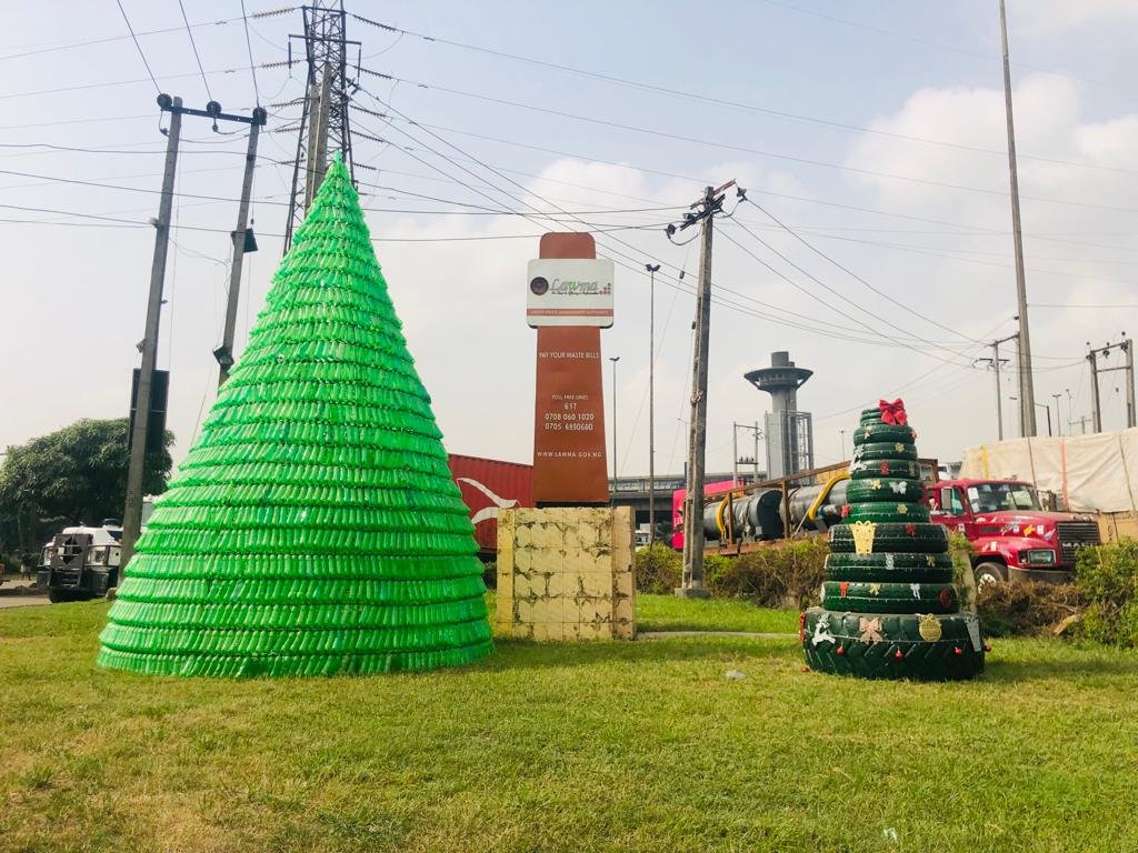 Lagos Waste Management Authority (LAWMA) and its sister agency Lagos State Parks and Gardens Agency (LASPARK,), have collaborated to use pet bottles and discarded old tyres, to build lovely eco-friendly Christmas trees, demonstrating to residents that waste materials could be used to creatively improve the aesthetics of the environment.