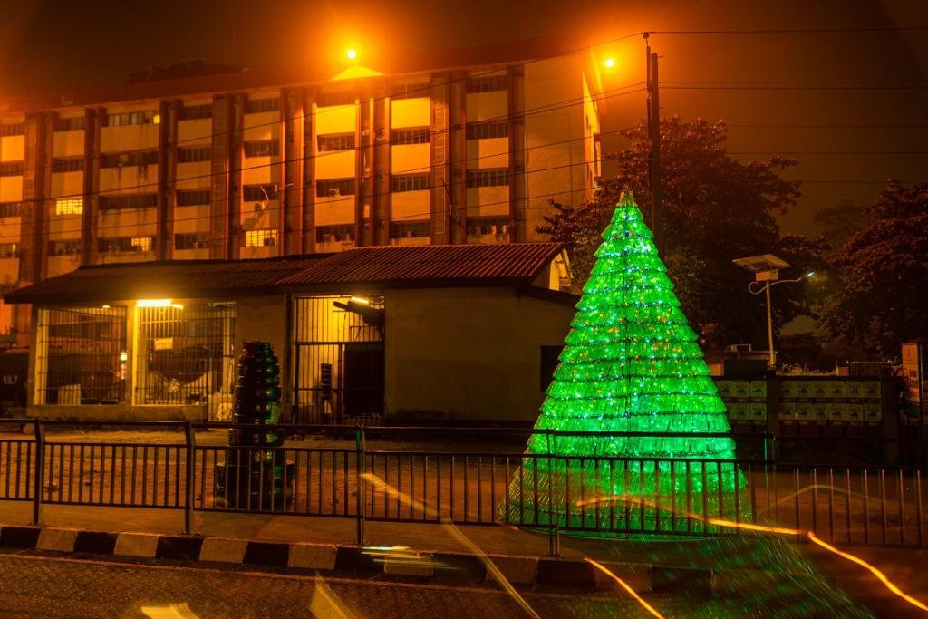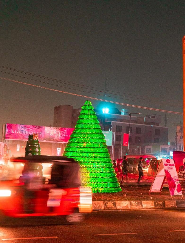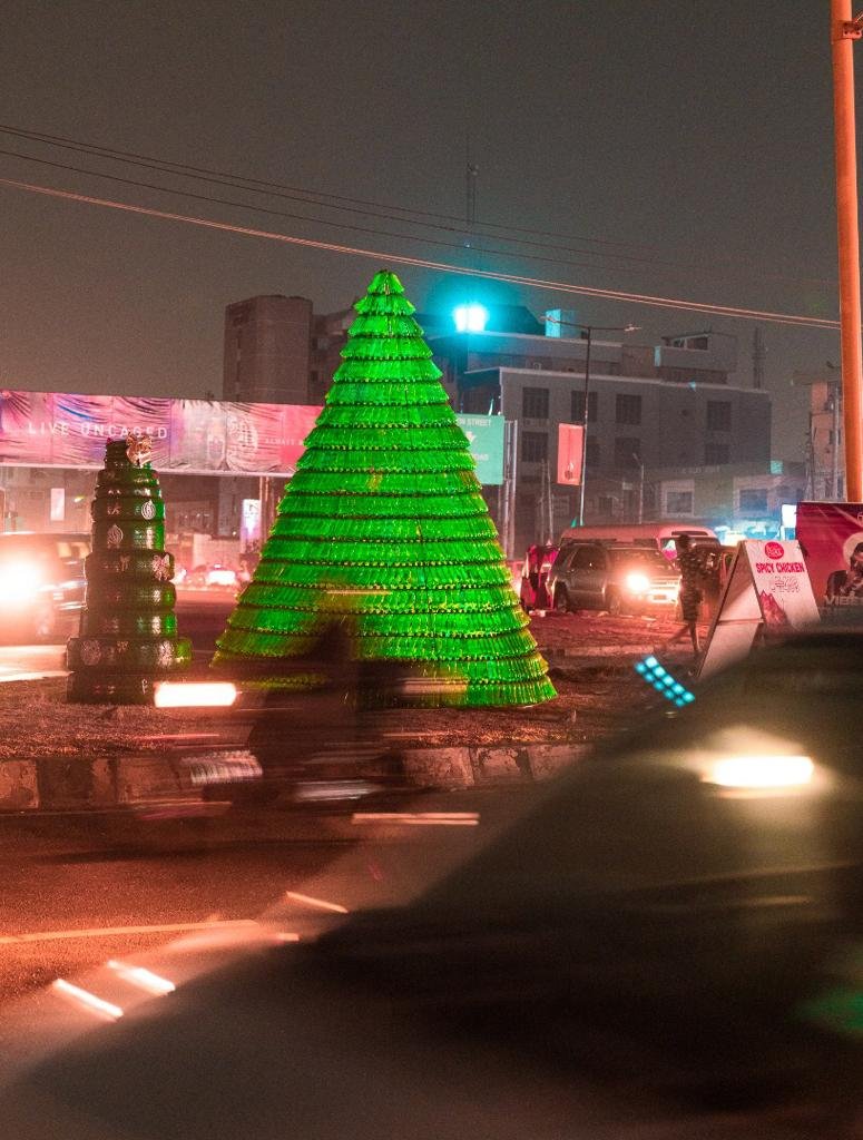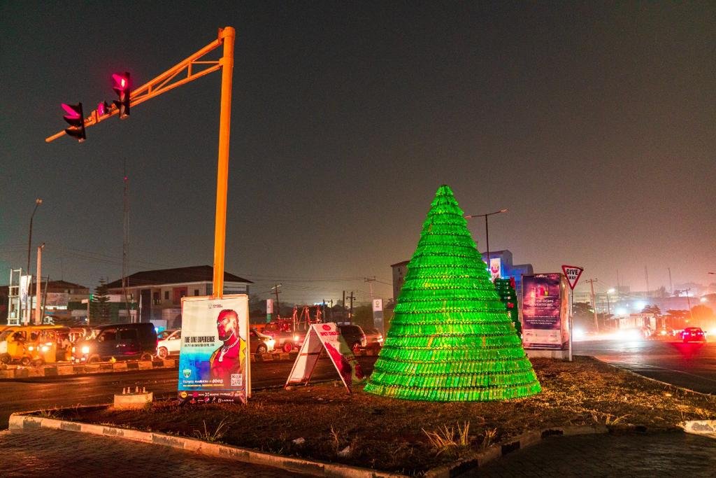 Lagos Waste Management Authority (LAWMA) and its sister agency Lagos State Parks and Gardens Agency (LASPARK,), have collaborated to use pet bottles and discarded old tyres, to build lovely eco-friendly Christmas trees, demonstrating to residents that waste materials could be used to creatively improve the aesthetics of the environment.