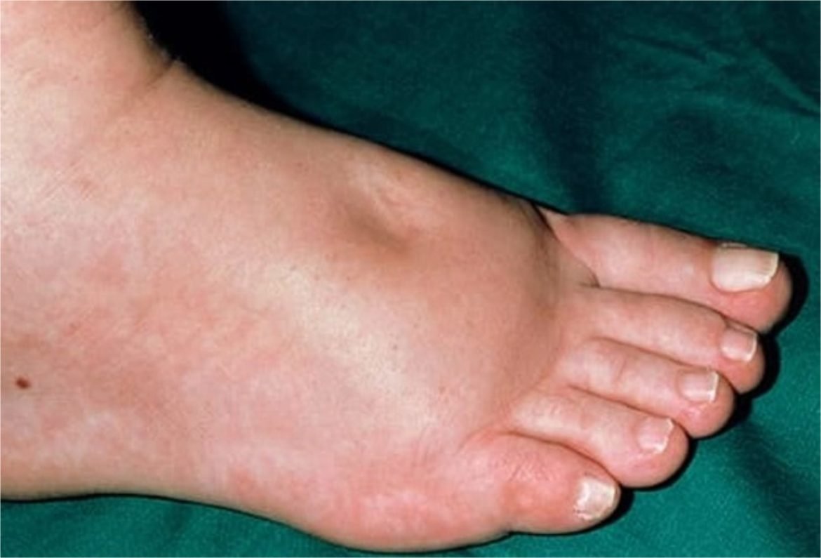Your swollen foot keeps a dimple after you press it.