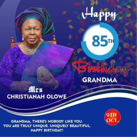 The 85th birthday party of Mrs Christianah Bamidele Olowe was held on Saturday, 23rd October 2021 in Ibadan. It was a great event organised by her lovely children; UK based Prophetess Adetutu Ogunleye-Olowe, Ronke Pearce, and Rotimi Olowe. The party was held in style as family members, friends, associates and well-wishers stormed the Bashmol Event Centre, along Old Ife Road in Ibadan to celebrate the loving and caring Madam Christianah, who many people fondly referred to as Mummy Saudi. It was a classic gathering and fun extravaganza as hours spent by guests at the event were not wasted.