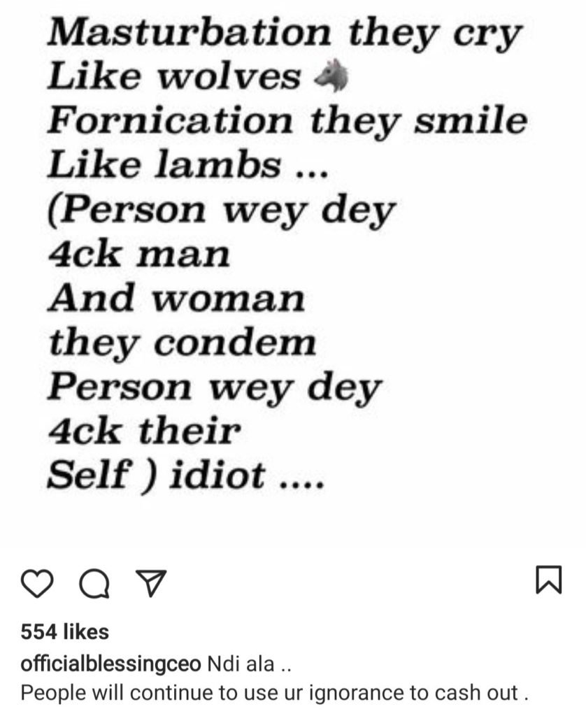 “Masturbation isn’t a sin, fornication is” -Blessing Okoro