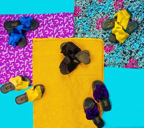 The campaign showcased an array of a colourful palette of velvet slippers with fun festive colours: yellow, purple and blue.