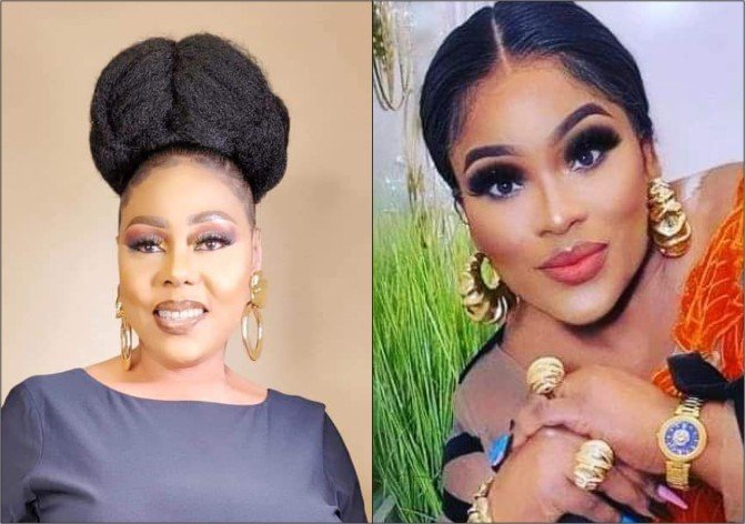 A few months back also, Mama Oni Mama flew into Lagos with her friends to play host to a grand burial for her mum. It was the talk-of-the-town burial party that shut down Lagos. Her real name is Adejoke Riskat Opeifa. It was her birthday a few weeks back and Facebook was hot that day as many celebrity women greeted her back to back. She lives in London. She is big in London. She loves Jewellery.