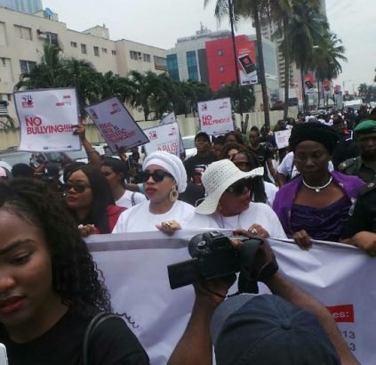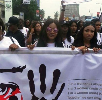 Queen Wuraola Ogunwusi of Ile-Ife who founded the #1in3Africa Campaign to spread awareness to end domestic violence and sexual abuse against women across the continent was joined by Nollywood actresses, Tonto Dikeh, Mercy Aigbe, Dolapo Badmus, Foluke Daramola, and others to walk against domestic violence.