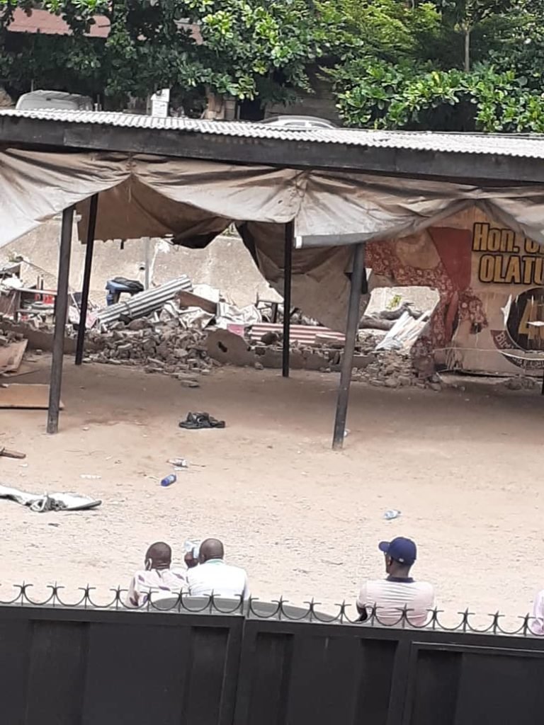 The team of task force which came with armed men stormed the office at about 12 noon and began to deploy all their demolition tool on the structure while some vehicles were parked in.
