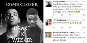 Nigerian music star, Wizkid took everyone by surprise after he dropped a single “Come Closer”, featuring Canadian rap star, Drake, on it. The video of the song which has attracted nice reviews was dropped on Thursday and Drake was missing in it. This has got Nigerians taking and dissing Drake for missing in the video.