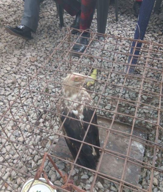 They brought an eagle in a cage for the Biafra advocate who is based in the United Kingdom. The significance of the eagle in Biafra coat of arms is that it stands for the pride and self-esteem of Biafra as a sovereign nation under heaven.