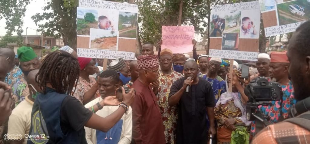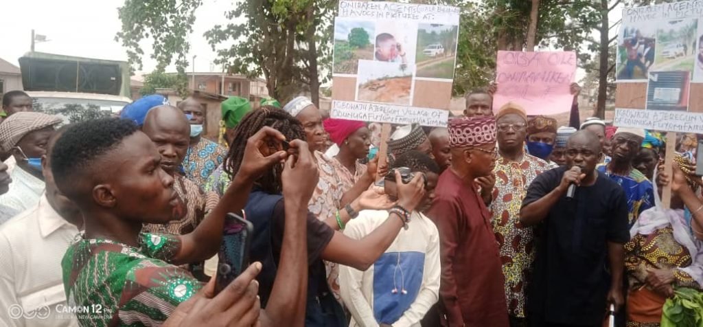 The concerns of Makun people hove around the alleged excesses of land grabbers who have invaded the ancient town of Makun, seizing lands and chasing indigences away from their ancestral homes. According to report, no fewer than fourteen villages have been invaded by the order of one Oniranke of Iranike, Oba Adewale Adeniji who is being alleged to be the brain behind the act.During the peaceful protest at the ongoing meeting of Obas, two kings were sent by the Akarigbo to calm the angry protesters and sue for peace.