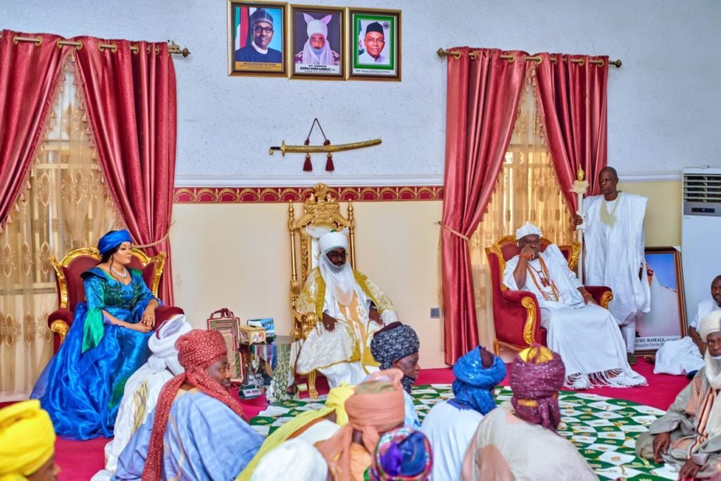 The Ooni alongside his amiable queen, Olori Tobiloba Ogunwusi had on his arrival at the Kaduna International Airport on Sunday proceeded straight to the ancient city of Zaria on a courtesy visit to the Emir of Zauzau HRH Mallam Ahmed Nuhu Bamalli, CFR as a mark of territorial honour. He was also joined by Yoruba indigenes residing in Zaria who had trooped out to welcome the number one king in Yorubaland.