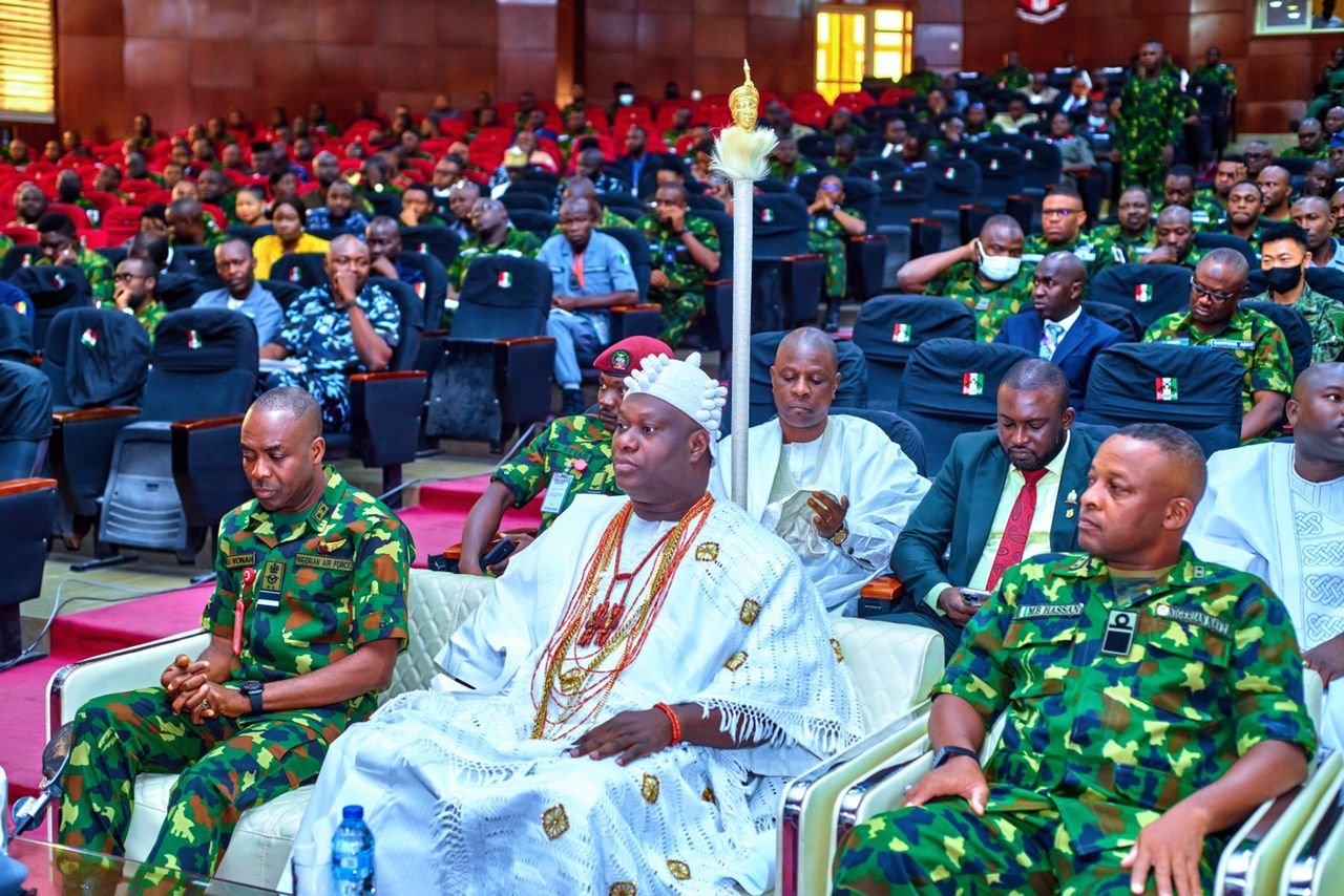 In his speech, the Commandant of the Armed Forces Command And Staff College, JAJI Kaduna state, Air Vice Marshal Emmanuel Wunoh thanked the monarch for honouring their invitation and expressed satisfaction with the Ooni’s speech to the officers of the Nigerian military who were present at the lecture which is an annual exercise organised by the military training institution to cross-fertilize ideas and strengthen inter-agency collaboration between civil-military and paramilitary organisations to tackle emerging and contemporary security threats within their domains.